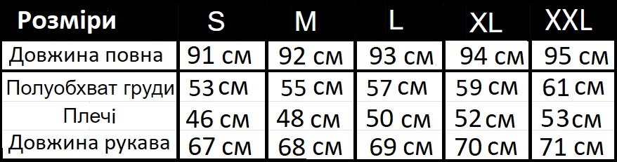 - Розміри: (S),(M),(L),(ХL),(2ХL).